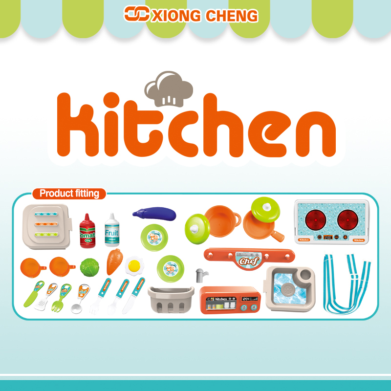 This play set is constructed from high-quality, durable materials to withstand the enthusiastic play of kids. The main structure of the kitchen is designed with attention to detail, featuring a stove with burners that can be "turned on" and "off" with a simple twist or push, accompanied by realistic clicking sounds to enhance the play experience. The oven has a door that opens and closes smoothly, allowing children to "bake" their favorite pretend treats.