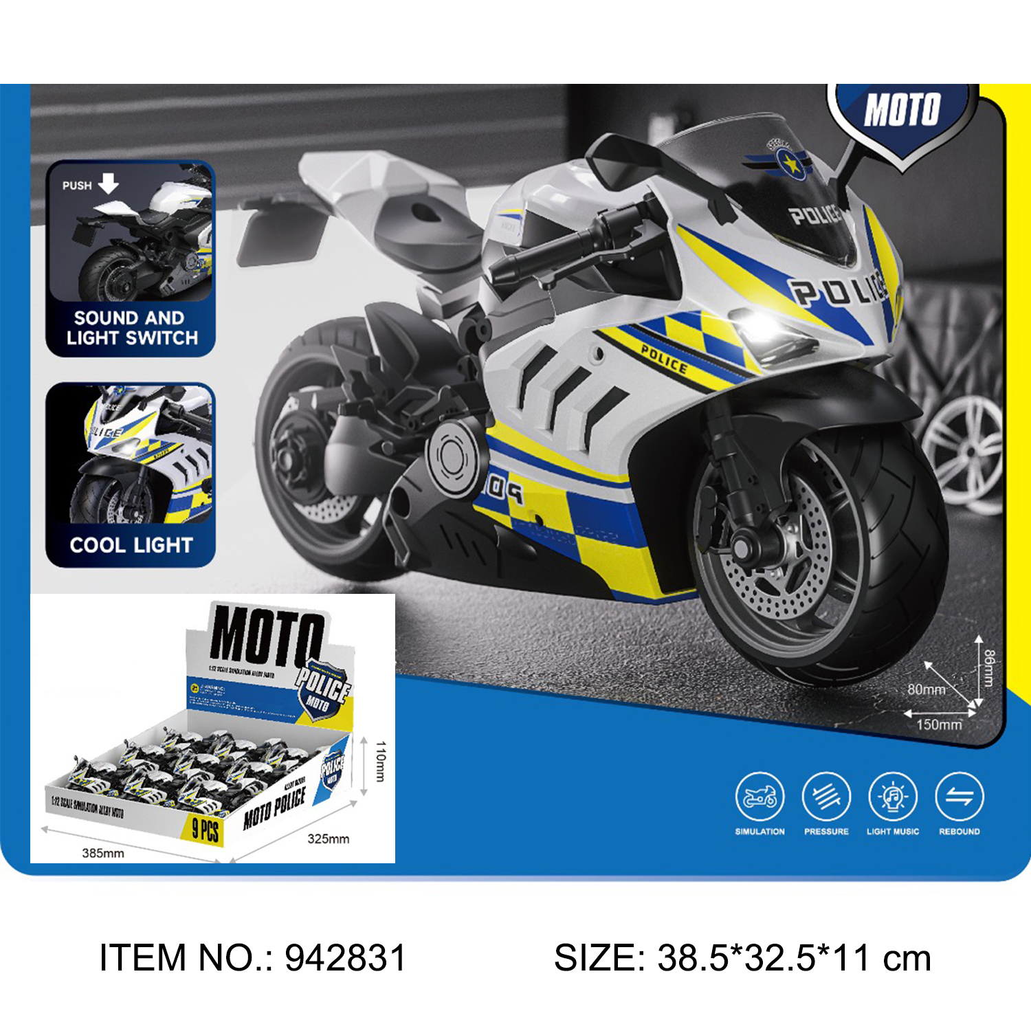 1:12 PULL BACK METAL MOTORBIKE WITH MUSIC & LIGHTS(USE AG3 INCLUDED),TEST REPORTS:EN71 PART1-2-58 AND PHTHALALT TEST.