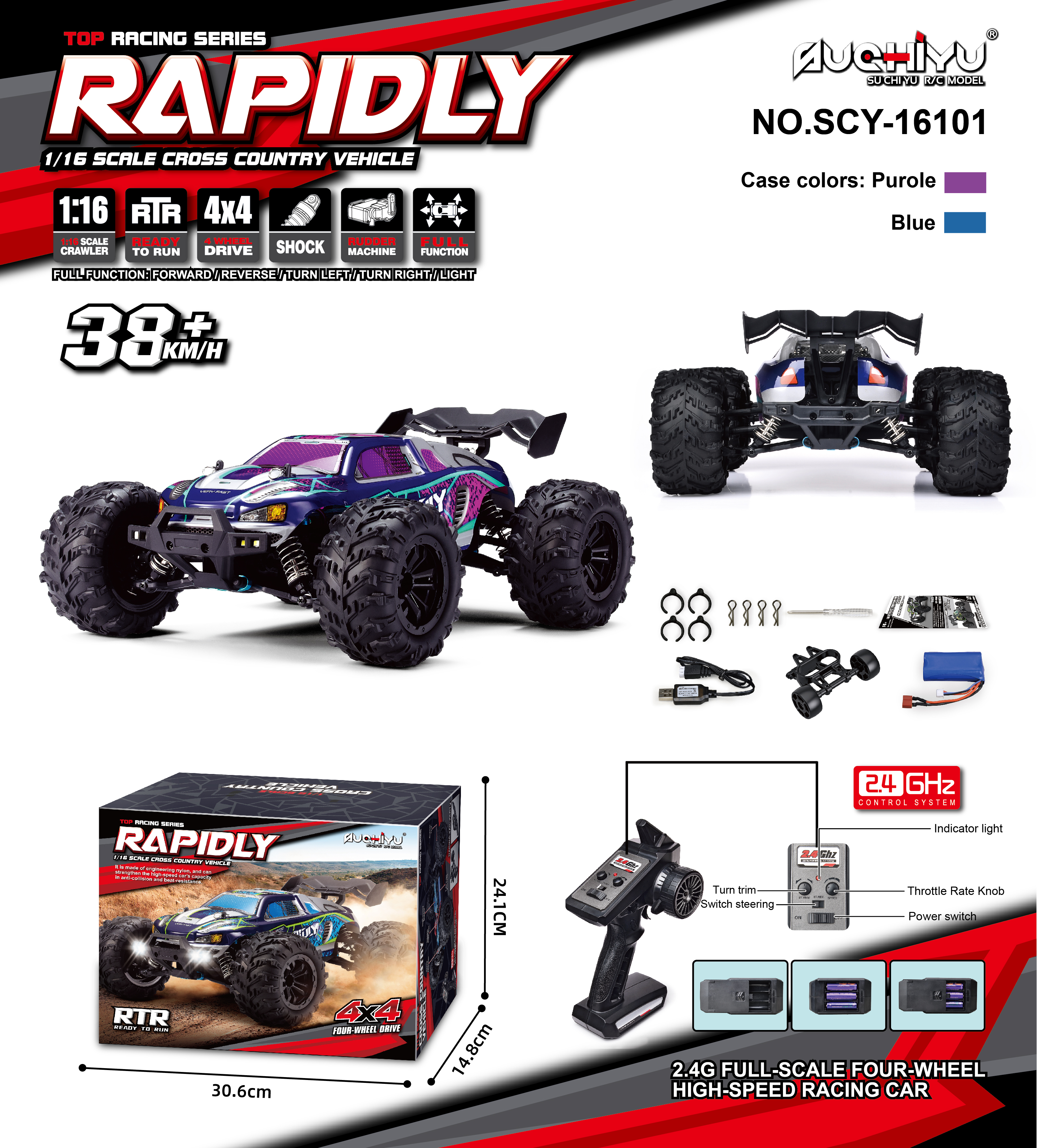 4. 2.4G full scale synchronous remote control system Full proportional throttle/steering;