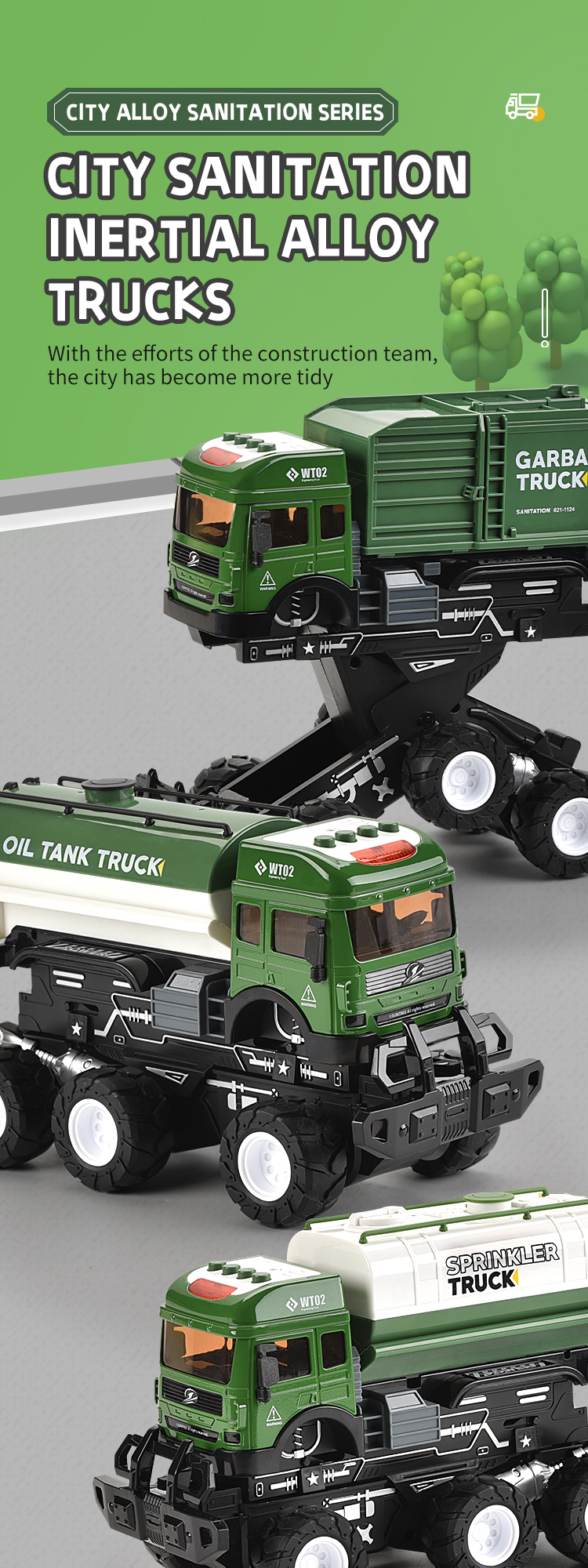 1:18 Mini Construction Trucks, Construction Vehicles Site for Kids Engineering Toys Playset, Truck, Engineering car truck toy with music and light