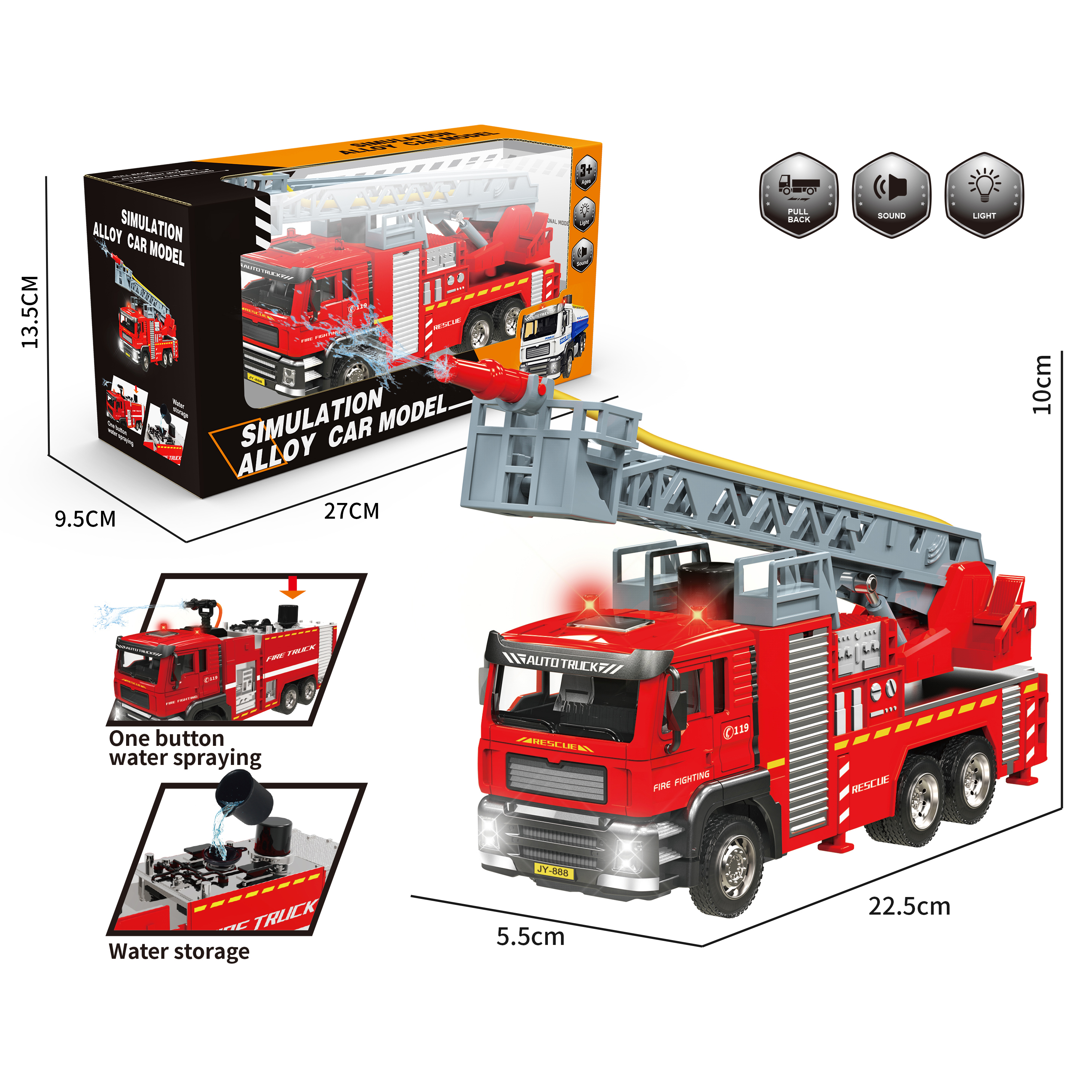 1:24 Diecast alloy truck with water spray feature,light and sound