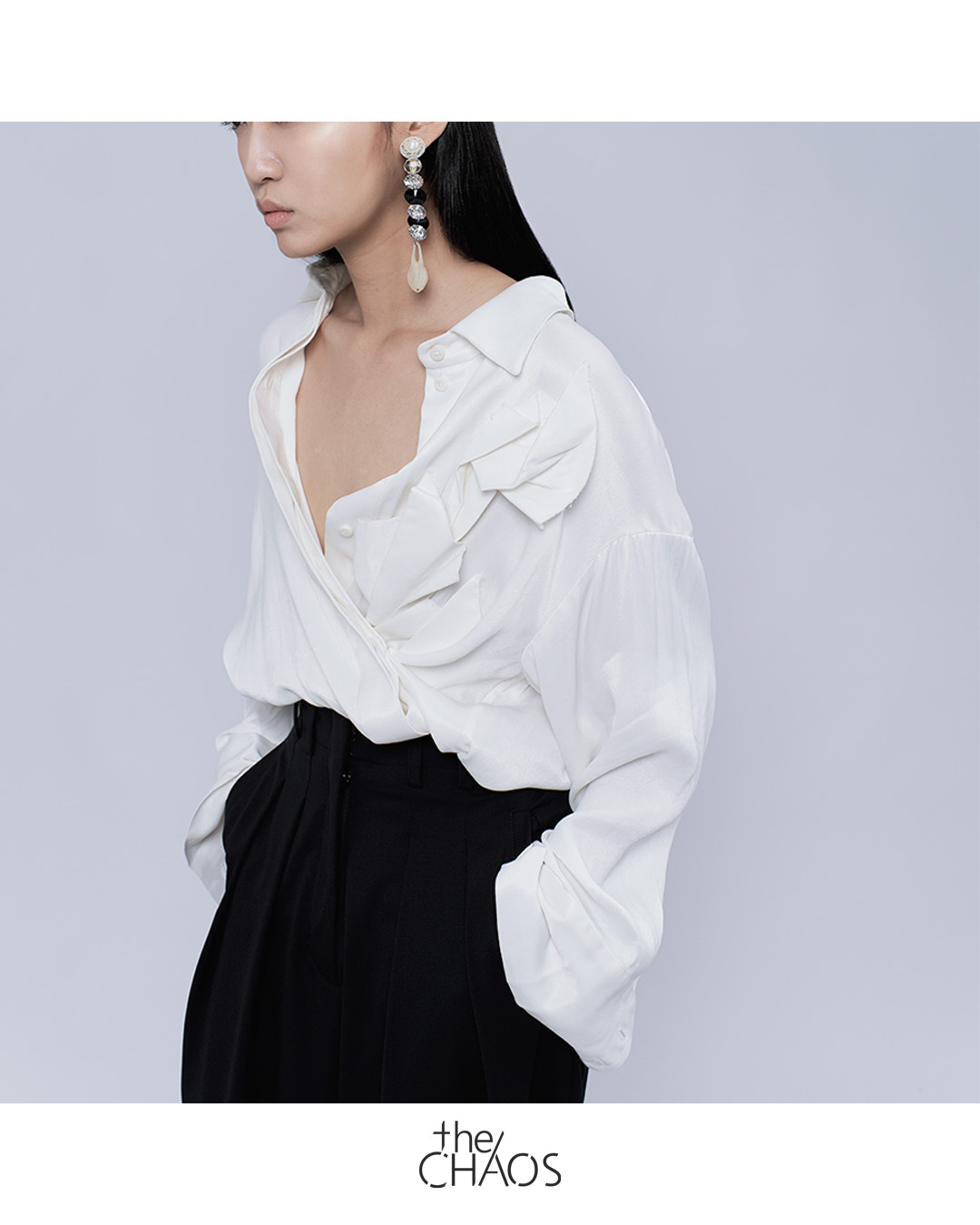 3D flow sculpture oversized wrap shirt in 100% orange fibre crepe fabric.The fabric is wonderfully soft on our skin and smooth like silk.Explore the rare natural fibre to maintain the balance of biodiversity.Orange fabric may provide Vitamin C and moisturise skin naturally.