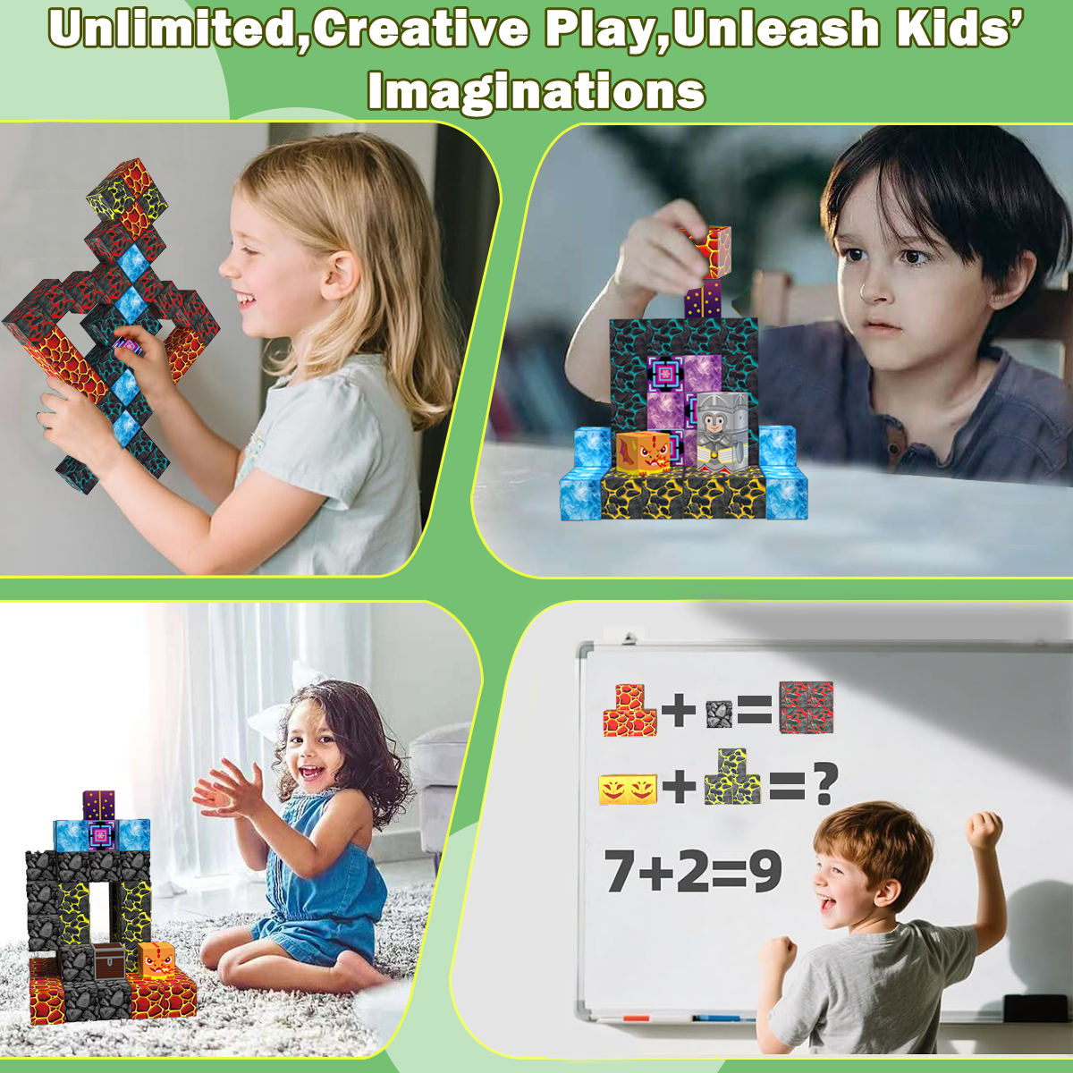 100PCS Magnetic Tiles Kids Toys STEM Magnet Toys Magnetic Blocks Building Toy Kids Learning Montessori Toy Sword Block