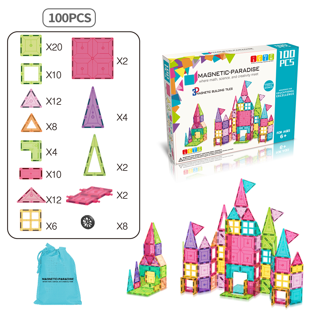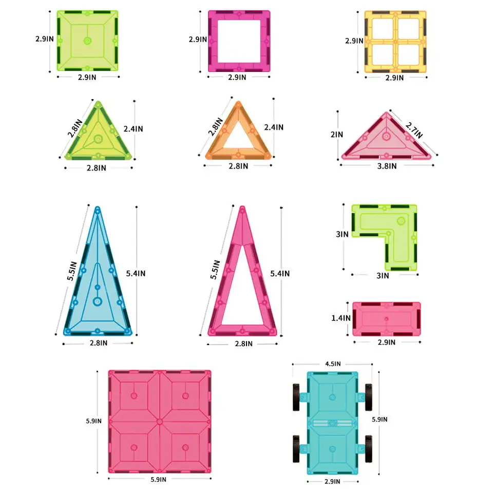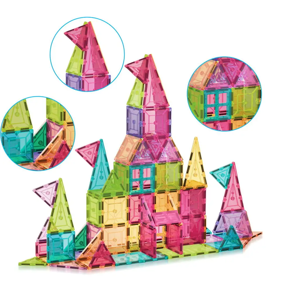 These magnetic tiles are made from BPA-free, non-toxic materials. With bigger magnets for guaranteed durability and strong hold. We also raised the edges of the tiles to avoid scratch problems.A great way to spend quality time with kids while they learn new things. Magnetic building toys made with topnotch materials.Conforms with CE, ASTM and EN71.