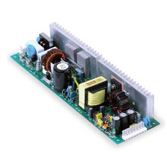 This 100W single-output open frame comes with a functional PFC function. The classical rectangular shape is robust and helps offer an extra-long serving time. This device with a built-in EMI filter features low power consumption.