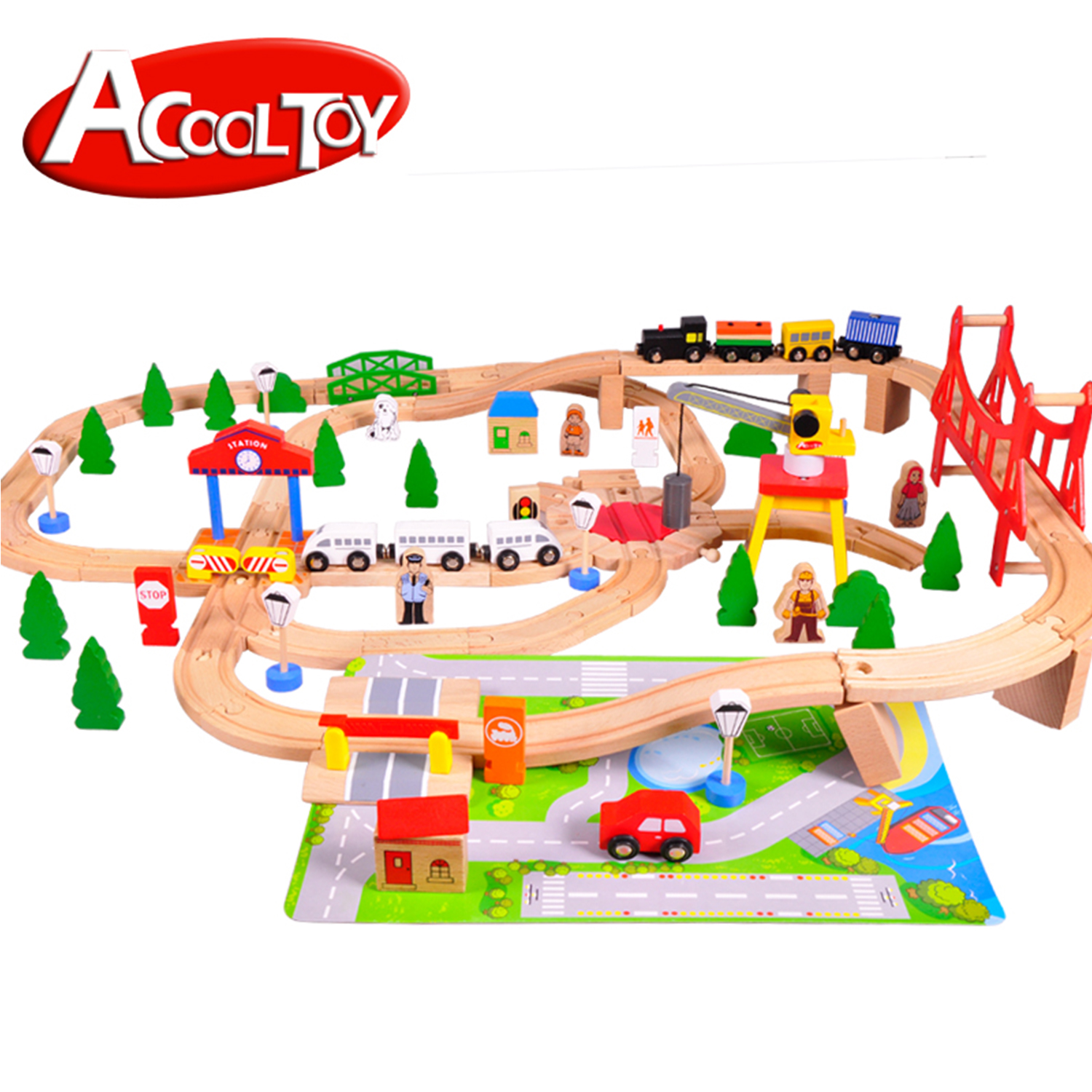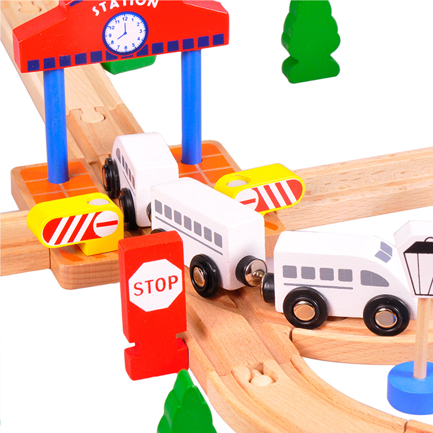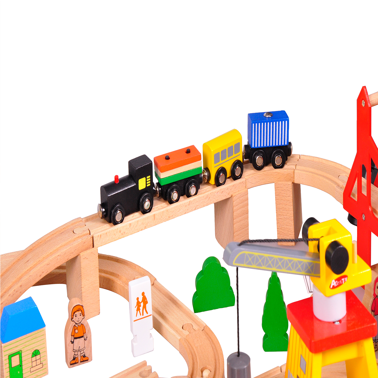 Every child will get thrilled with this lovable train set. This entertaining wooden train set consists of 100 vibrant pieces, allowing your kids to assemble endlessly possible layouts of railway tracks with trees, bridge, building and more provided to create a unique city. Fun and colorful, this set offers a nice birthday gifting idea for the little ones.
