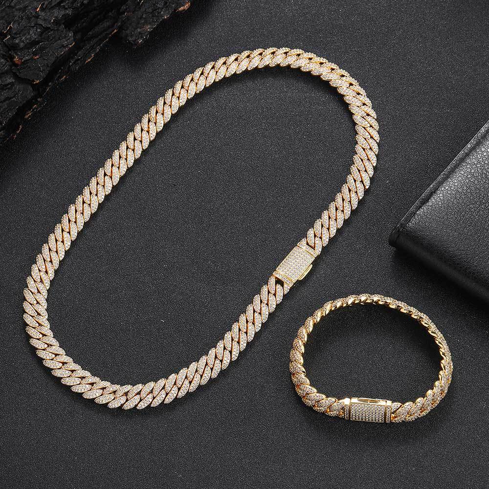 10mm Full Zircon Cuban Chain With Gold-Plated Hip-hop Punk Style Men' Necklace