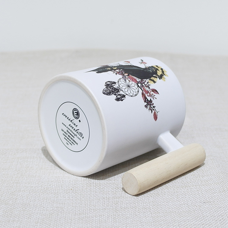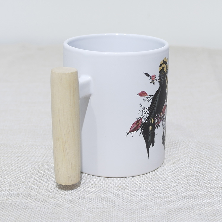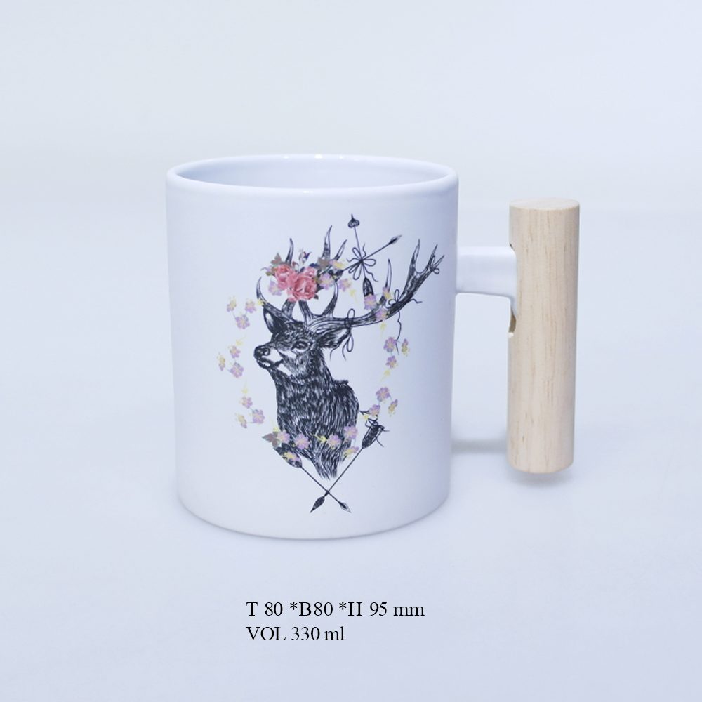 11oz Wooden Handle Black Coffee Mug Porcelain Milk Cup For Christmas Gift Home Use Tea Mug