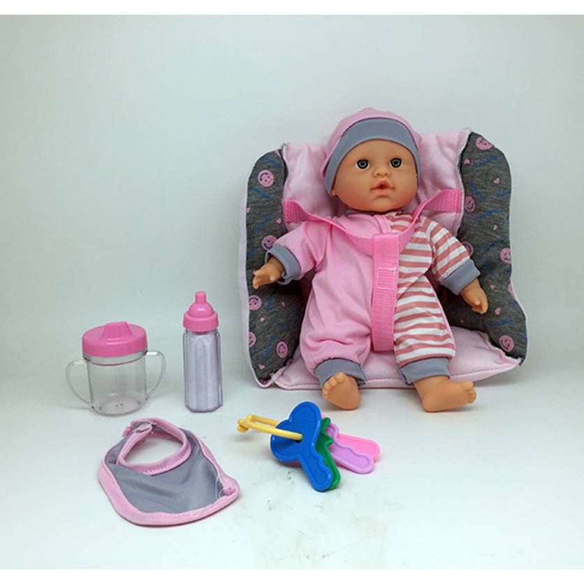 7 Pcs Pack of 12 Inch Doll and Car Seat Doll with Bib's and Milk Cup and Key Tag, for age 3 and up