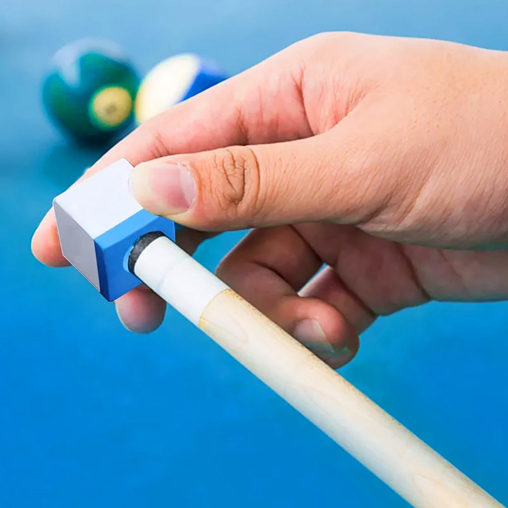 - Just apply the chalk to the tip of the cue stick to increase the friction between the pool cue tip and the cue ball. More adhesion allows the chalk to stay on the tip longer