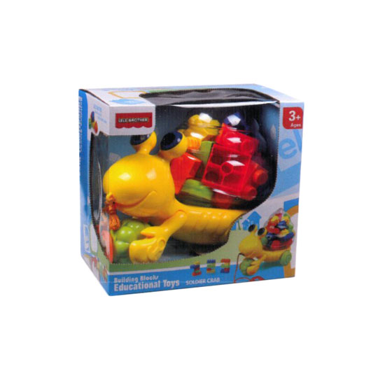 This building block set is nicely packed inside a soldier crab pull-along cart. The durable blocks can be played with for a long time. This quality set promises children hours of fun.