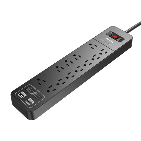 12 US standard AC surge-protected outlets, with 2390-Joule energy rating, protect your home and office devices from voltage fluctuations, surges and spikes.