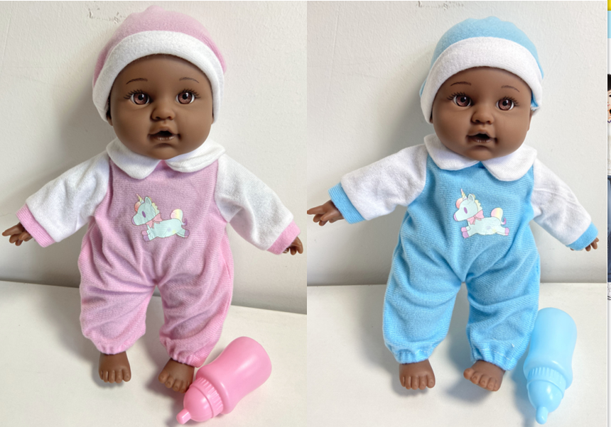 12 inch brown baby doll with outfit set; EACH PC IN BOX