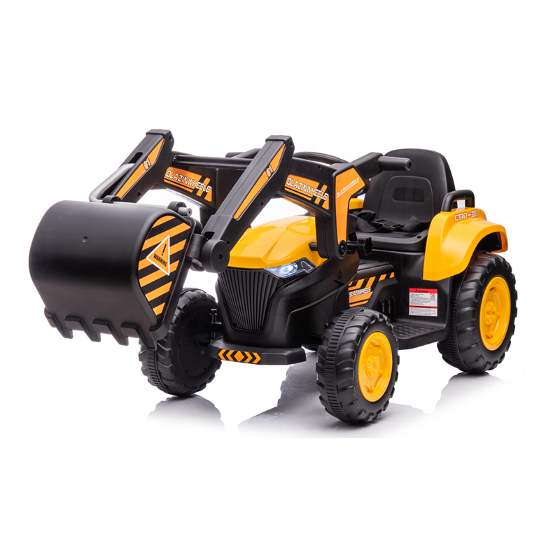 One button start, engine sound when switching on, headlights, forward and reverse, multifunctional music player, power display, volume adjustment, USB socket, MP3 socket.front bucket is workable,left handle bar to lift the arms and right handle bar will control the bucket up or turn over ,the lift arms are make of hard ABS plastic and metal.