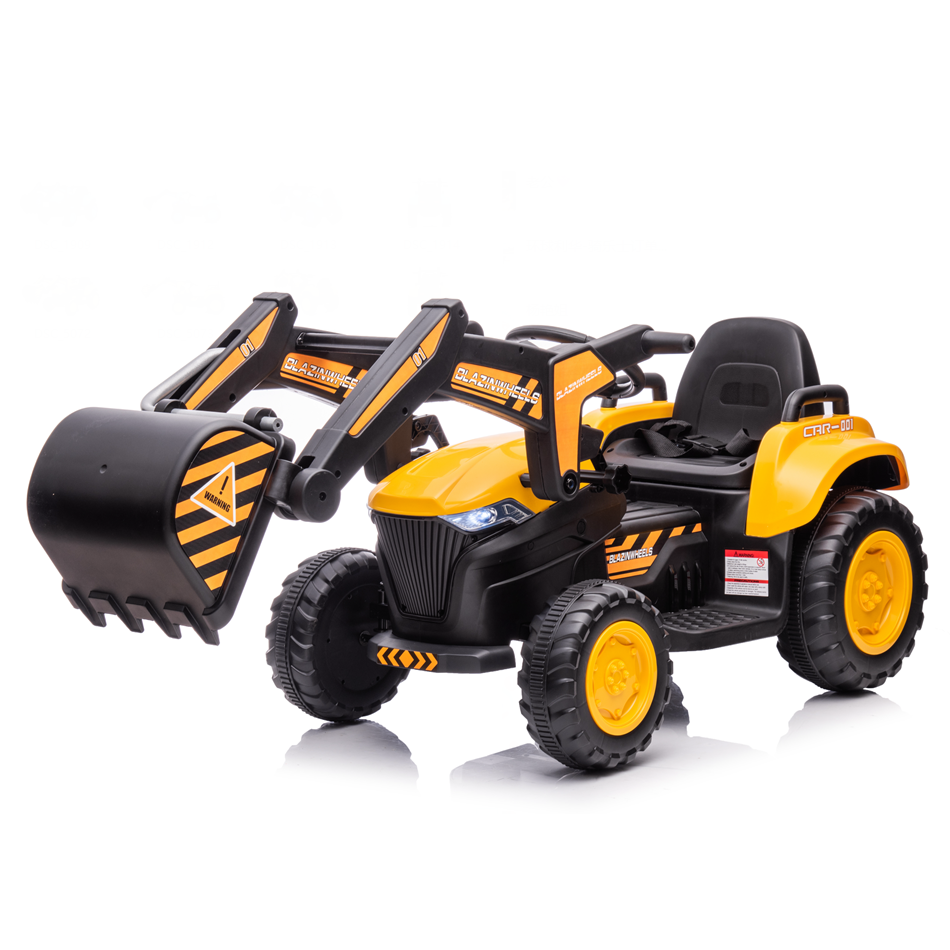 4.Front bucket is workable, left handle bar to lift the arms and right handle bar will control the bucket up or turnover. The lift arms are make of hard ABS plastic and metal.