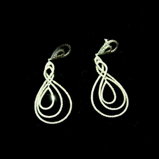 This pair of elegant earrings features intertwining curves adorned with stunning diamonds. The simplistic lines and shapes look clean and graceful. These finely crafted earrings highlight the feminine charm of wearers.