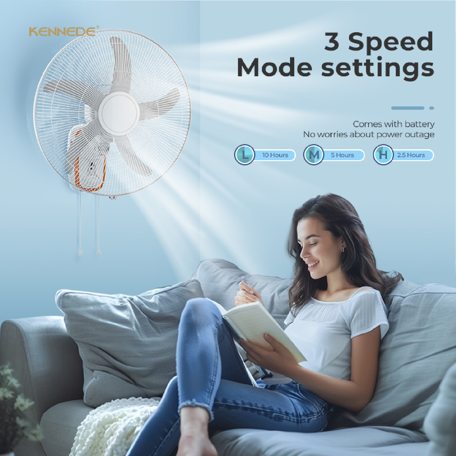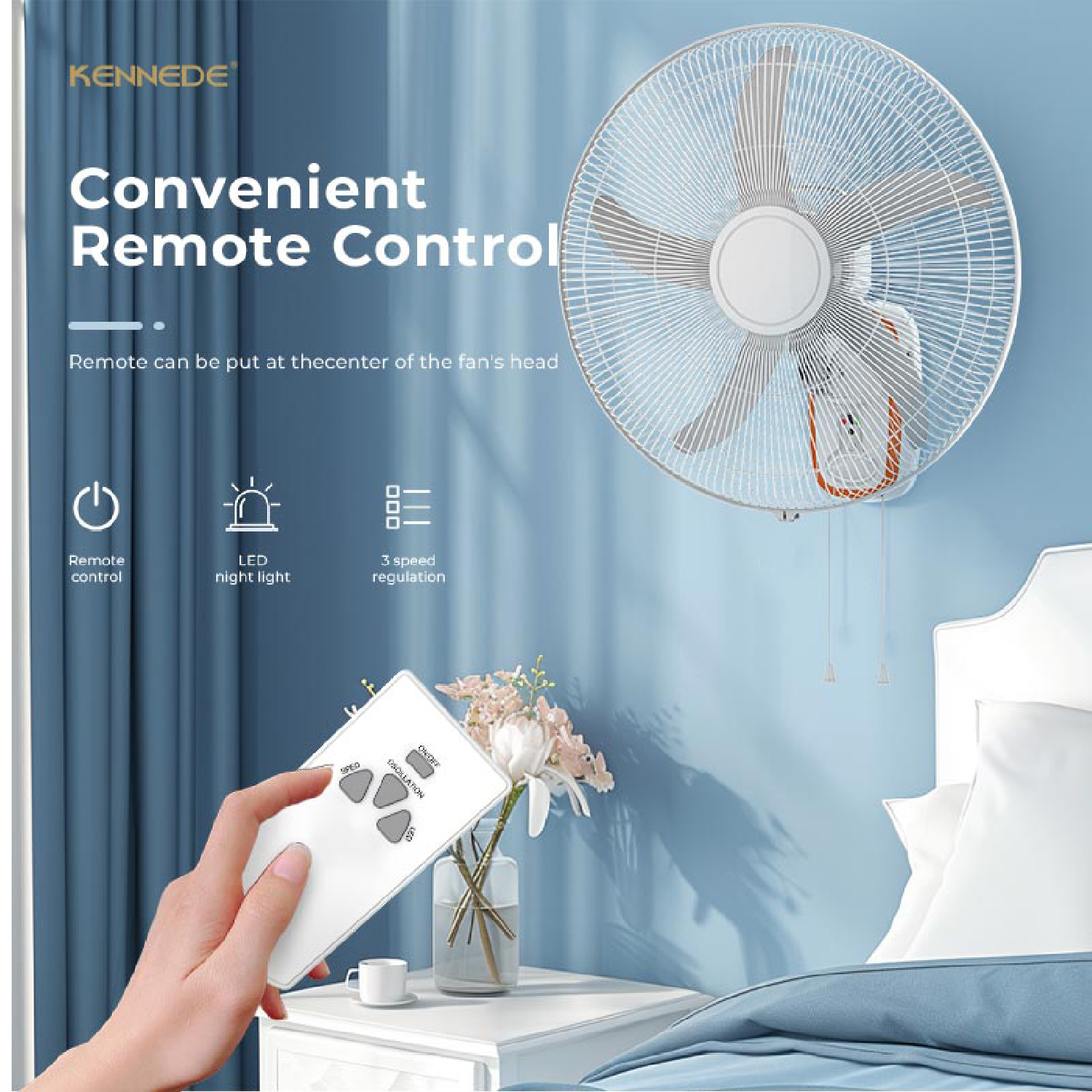 Right pull cord switch for fan speed control (High/Medium/Low) and ON/OFF.