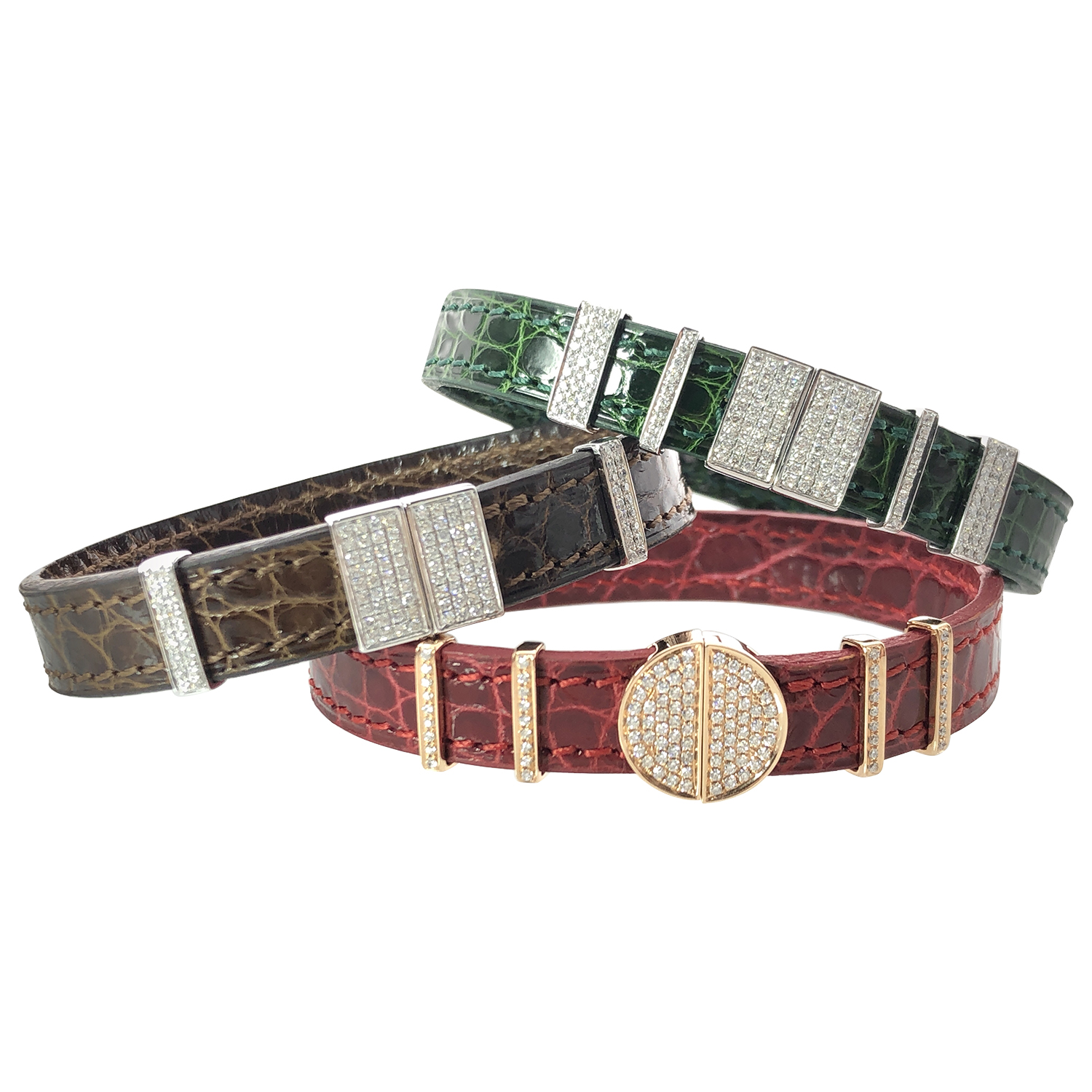 18K Diamond Leather Bracelet with several design and options.