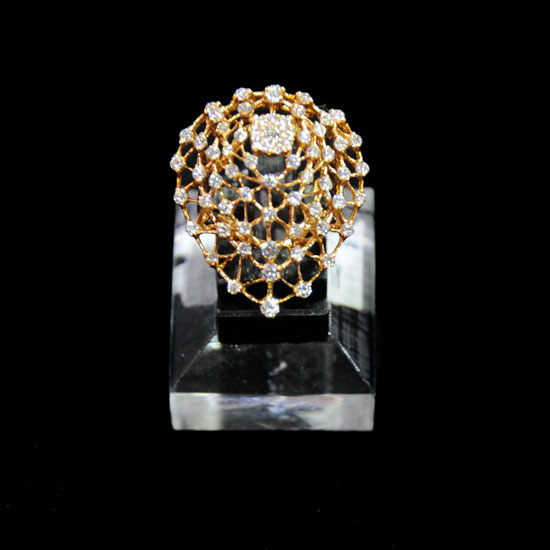 This ladies' finger ring dazzles with the extraordinary design resembling a web. Perfected by twinkling diamonds, this beautiful ring captures every lady's heart instantly. This sparkling diamond ring is the perfect one to complete an evening dress.