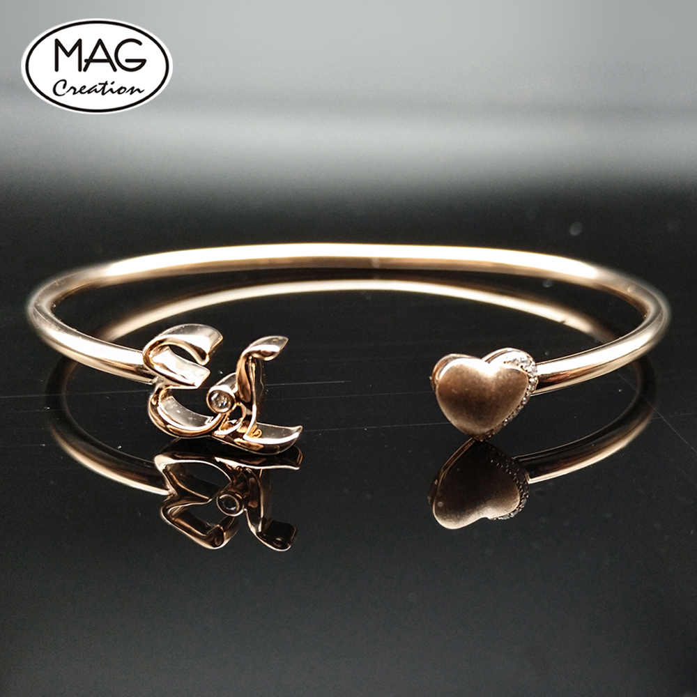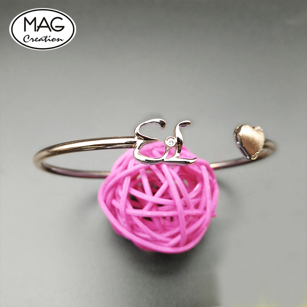 Love Legend Collection: Store Memory 18K Gold with 2 Letters Heart Diamond Bangle