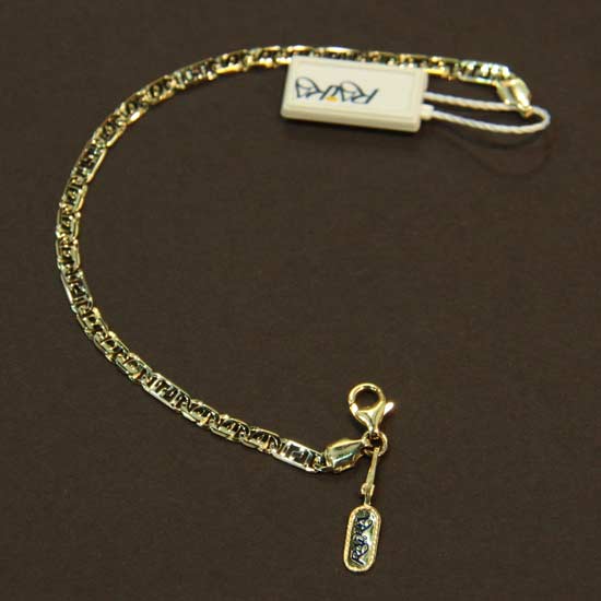 The stunning bracelet is chained by two-color golden rectangular hooks with a lobster clasp which links to an oval dangle. The gold bracelet is of high quality and is extra-light in weight. The gorgeous bracelet is a precious gift for showing your affection to the beloved one.