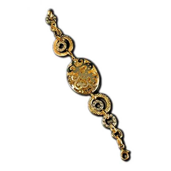 Pictured here is a fashionable bracelet in an 18K gold construction. The two-toned combination showcases added style. This 18K gold bracelet goes well with assorted outfits.