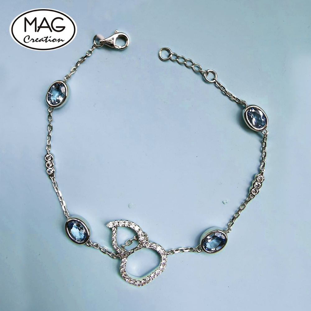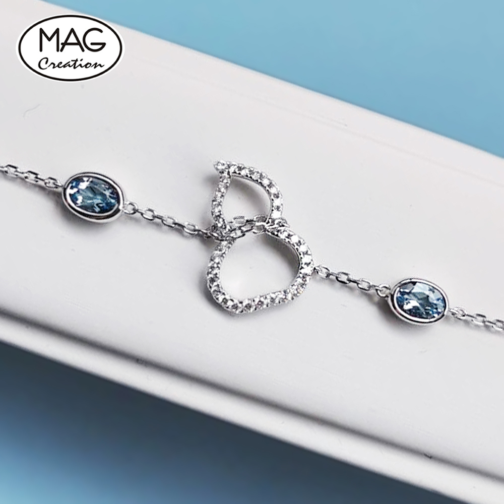 18K White Gold Natural Aquamarine Natural Diamond Hulu Bracelet