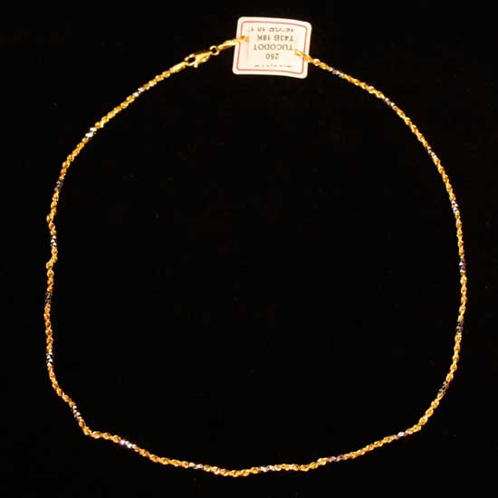 This displayed chain is entirely made of 18K white and yellow gold. The florid, twisting design creates a unique touch of style. Feel free to match your favorite pendant with this gold chain.