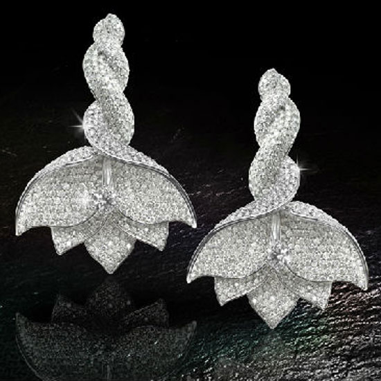 This is a pair of gorgeous earrings with a stylish and fashionable flower design. The earrings are finely made with dazzling diamonds on the 18K gold setting for an elegant touch. This pair of diamond earrings will surely make you stand out from the crowd.