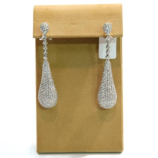 This is a pair of 18K white gold diamond earrings for ladies and women. The tear-drop earrings set with numerous round brilliant diamonds in micro pave setting. Its sparkling and glamorous appearance will certainly make every lady fall in love with it.