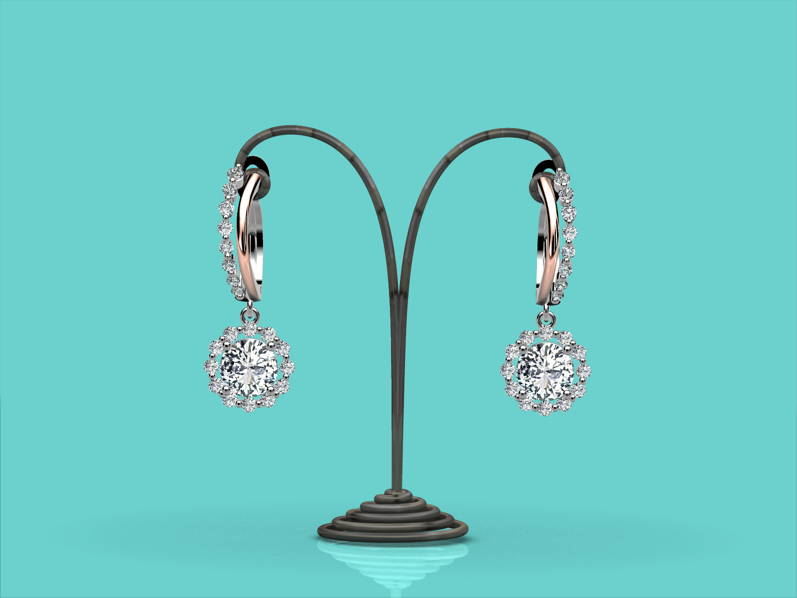 Drop earrings in 18K Gold with round brilliant diamonds.