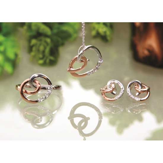 Highlighted is a fabulous diamond jewelry set including a ring, a pendant and a pair of earrings with a twisting design. The 18K gold construction offers endless shine while the diamond accents add a fascinating touch with dazzling beauty. Take your evening ensemble to the next level with this beautiful jewelry set.