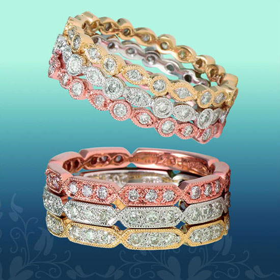 • 18K gold diamond rings and bangles.