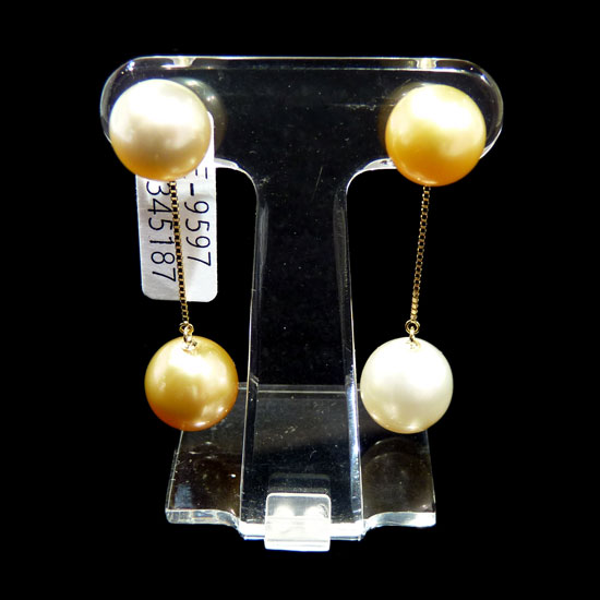 This is a pair of earrings that is made of 18-karat gold and shimmers with a high-gloss finish. The lustrous dangling pearls add a touch of elegance to the whole piece. This pair of earrings pairs with your outfit nicely.
