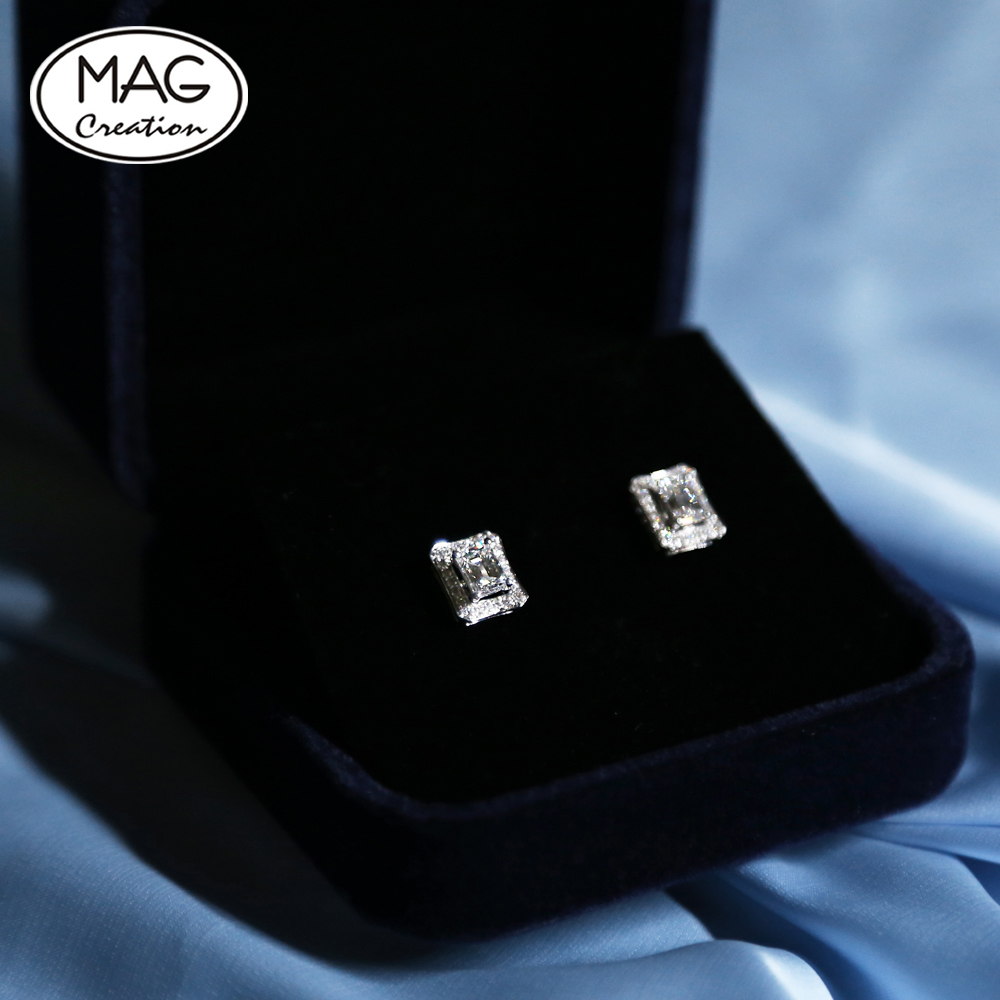 18K White Gold, Emerald Cut Diamond, @0.50ct*2pc, w/ 0.18ct loose diamond