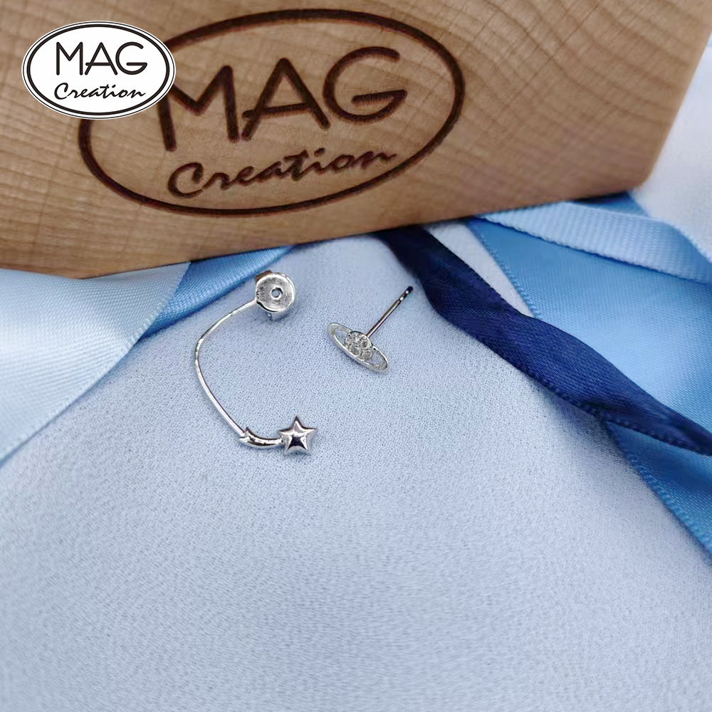 The Galaxy Ear ring:18K white gold 0.13ct Diamond Saturn ear ring w/ flying star 1 pc