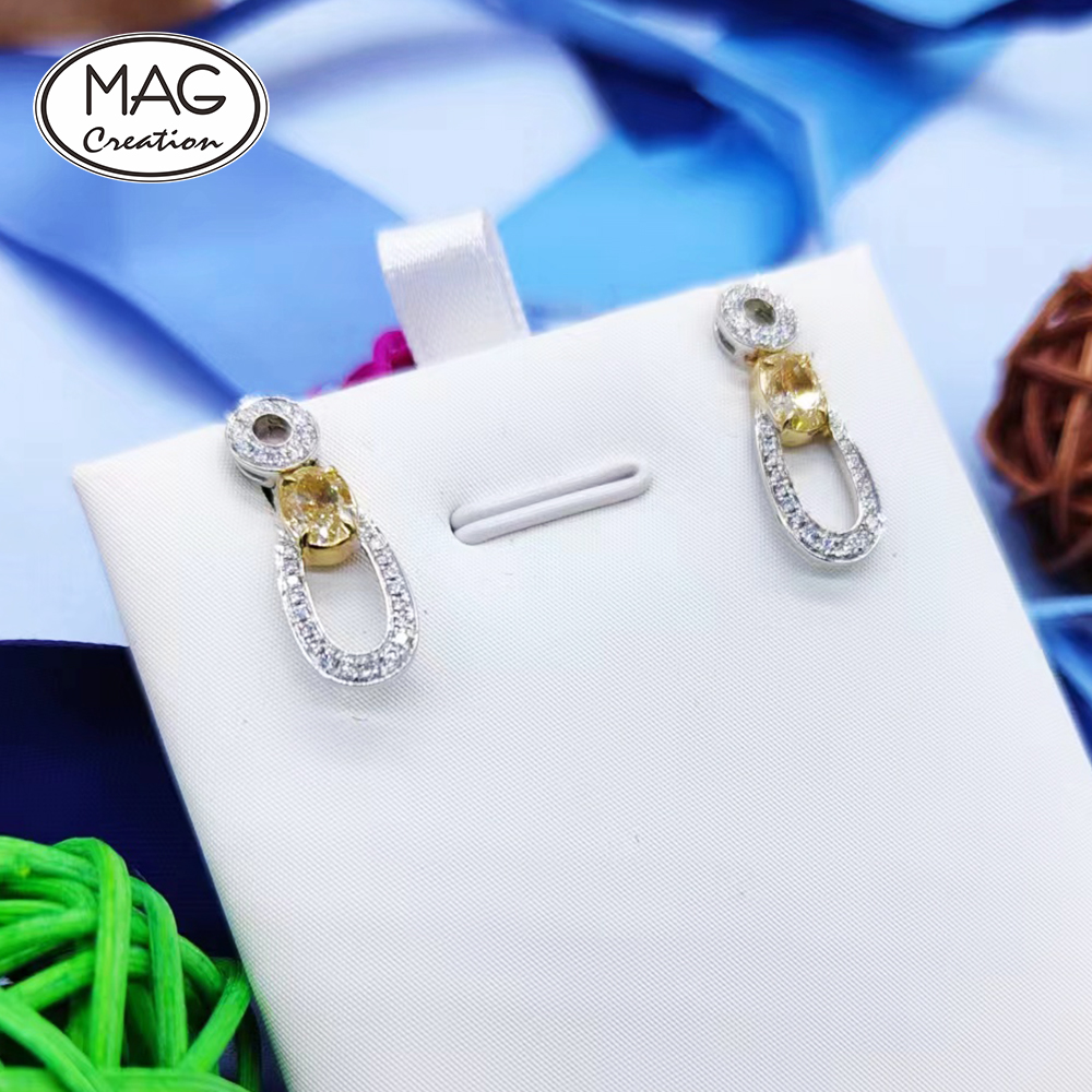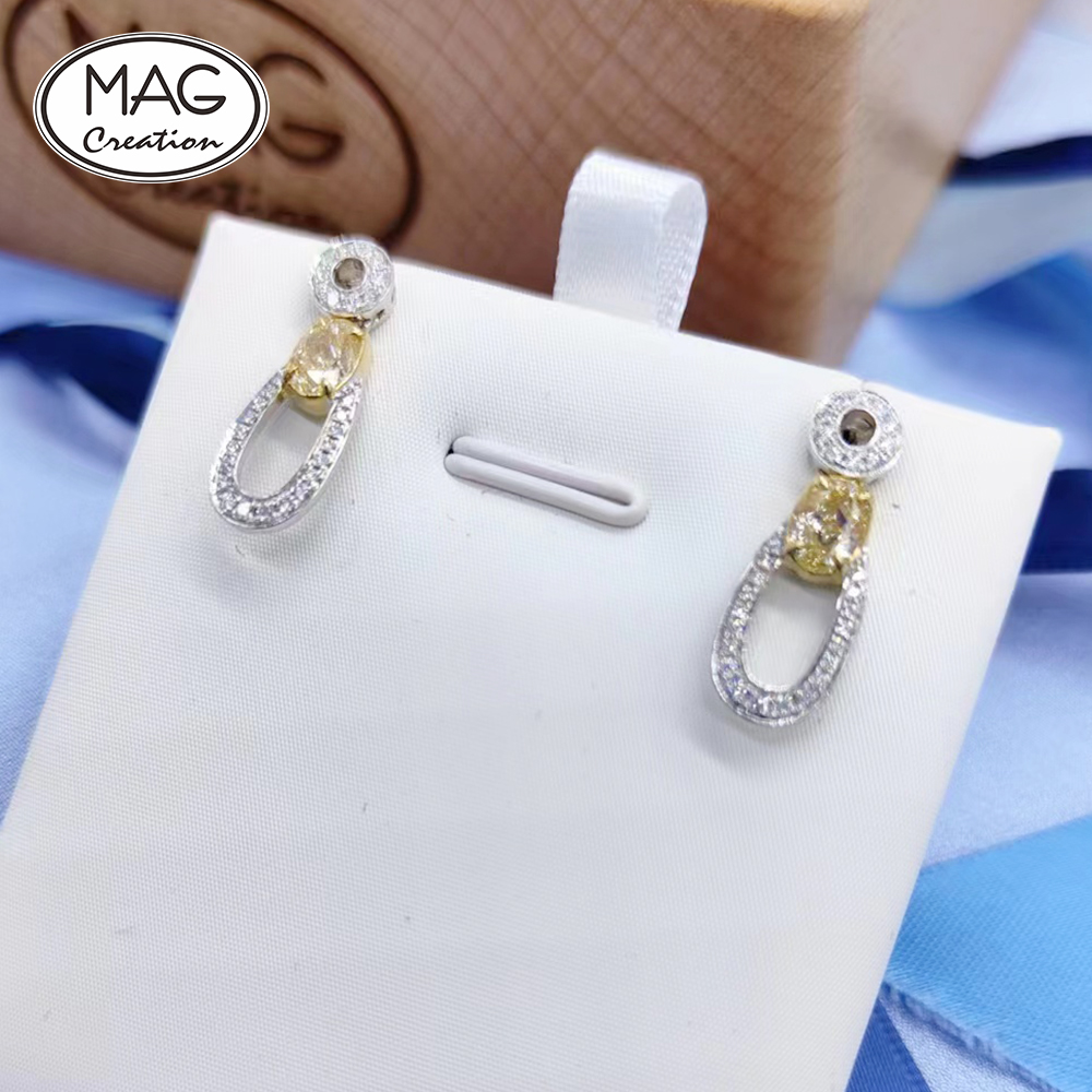 18K White Gold Natural Yellow Diamond Natural Diamond Earrings