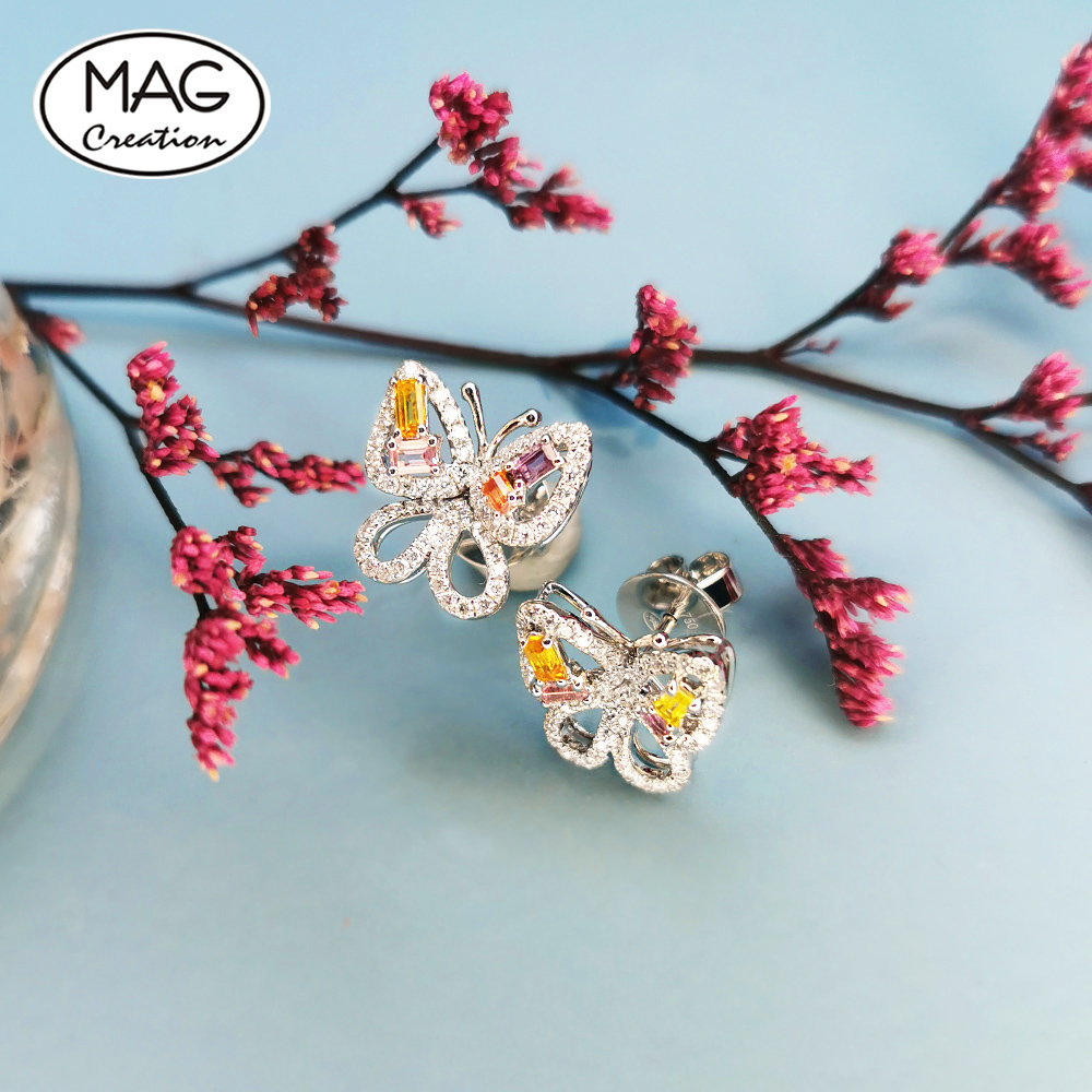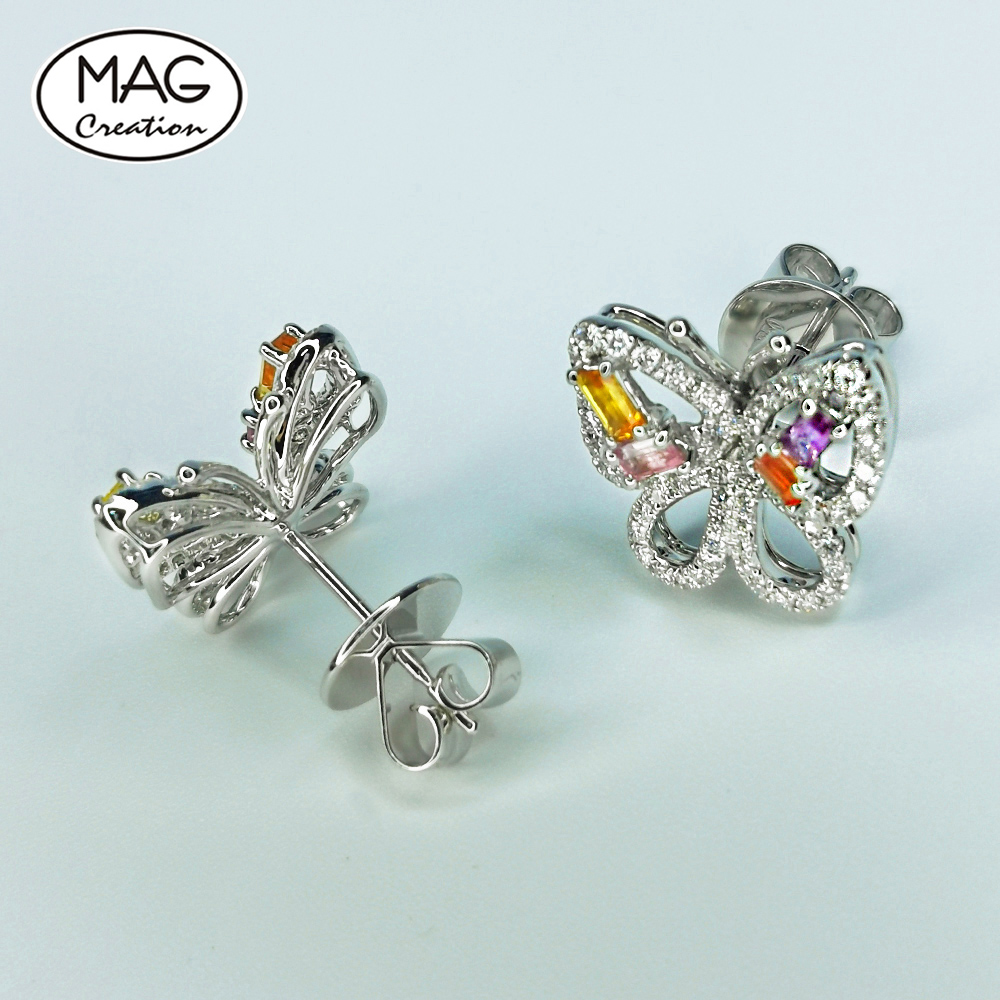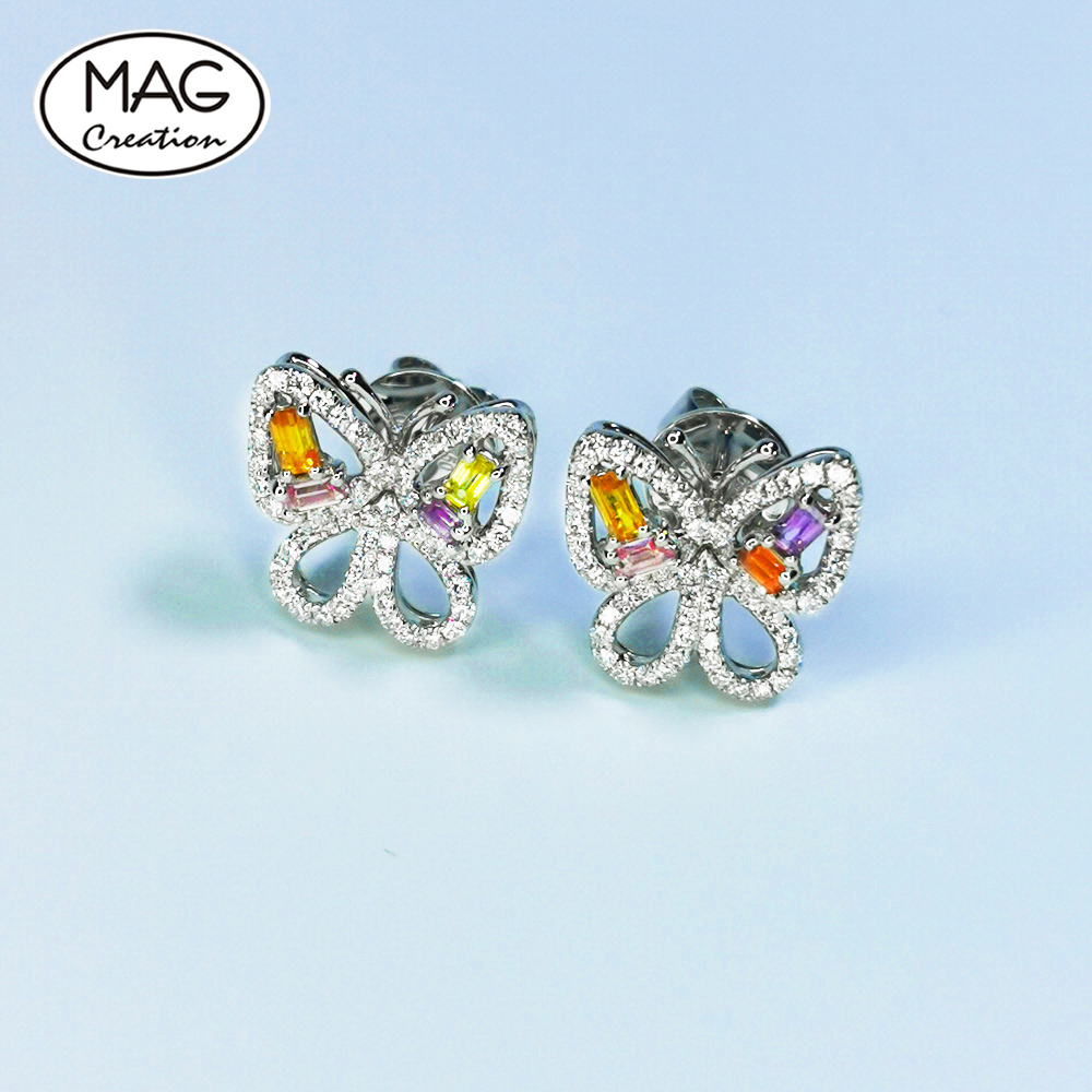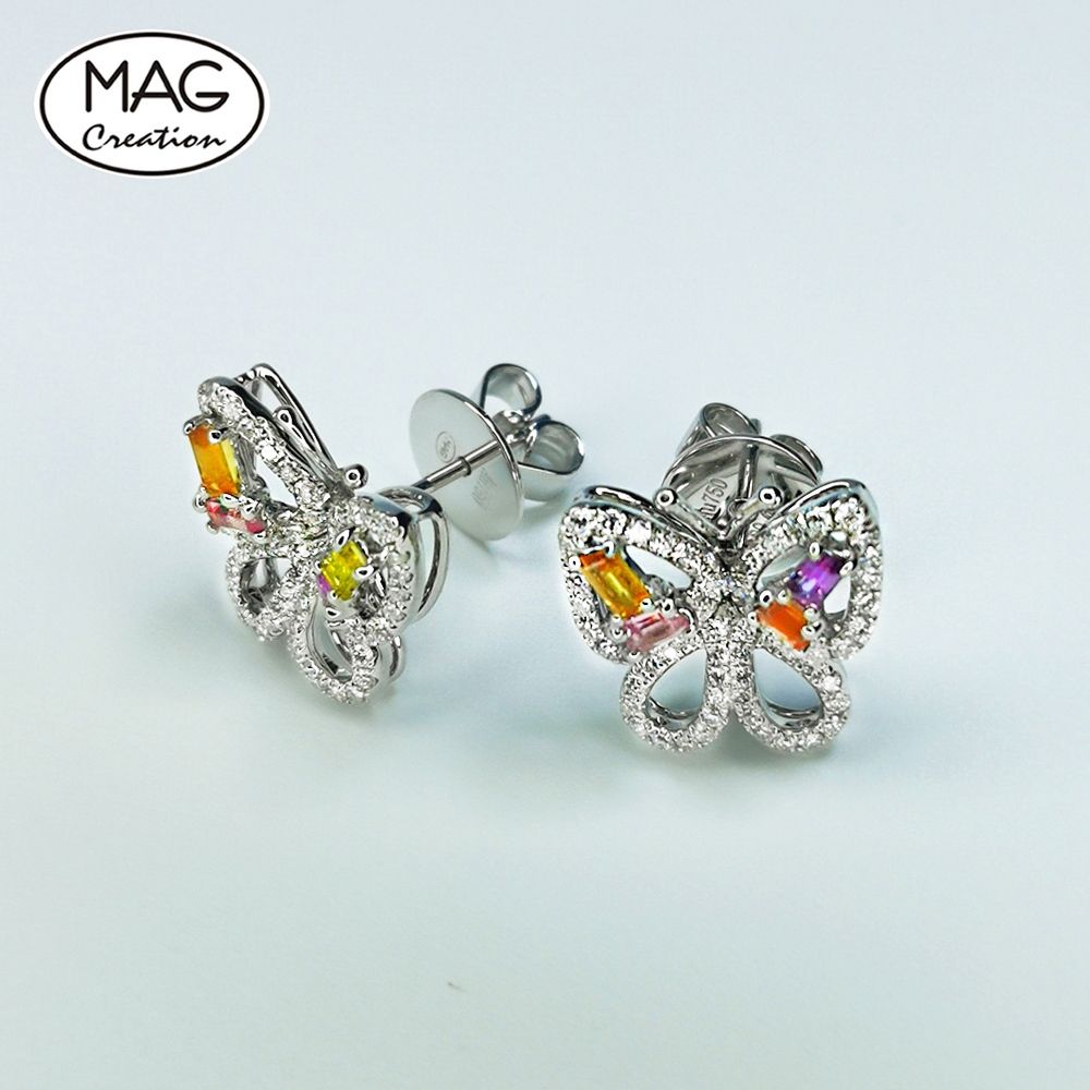 18K Gold Natural Fancy Sapphire Butterfly Natural Diamond Earrings