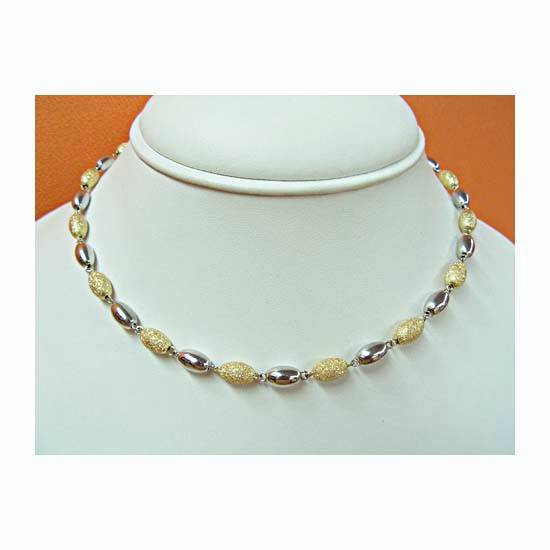 The gleaming necklace is finely crafted with 18K gold. The hallow diamond-cut beads in golden and silvery colors radiate a glow of elegance. This 18K gold necklace is a must-have item for special and grand occasions.