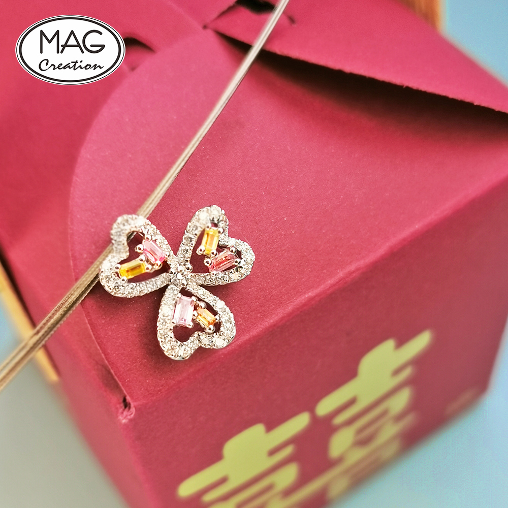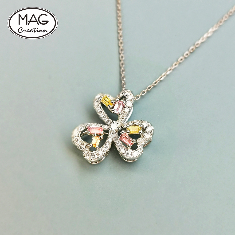 18K white gold, 0.35ct Fancy Color Sapphire, 0.35ct F VS natural Diamond