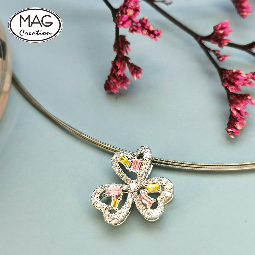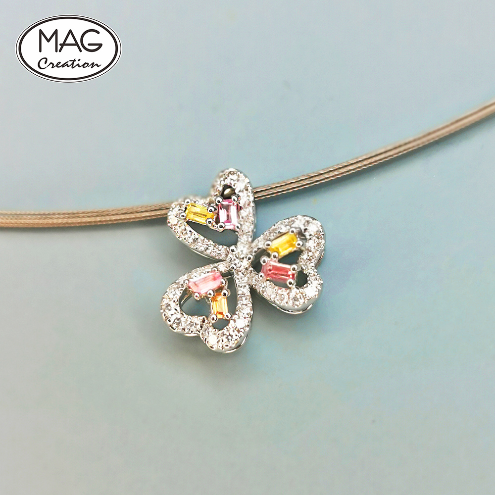 Passion for Life Collection: 18K White Gold Natural Fancy Sapphire Natural Diamond Clover Pendants