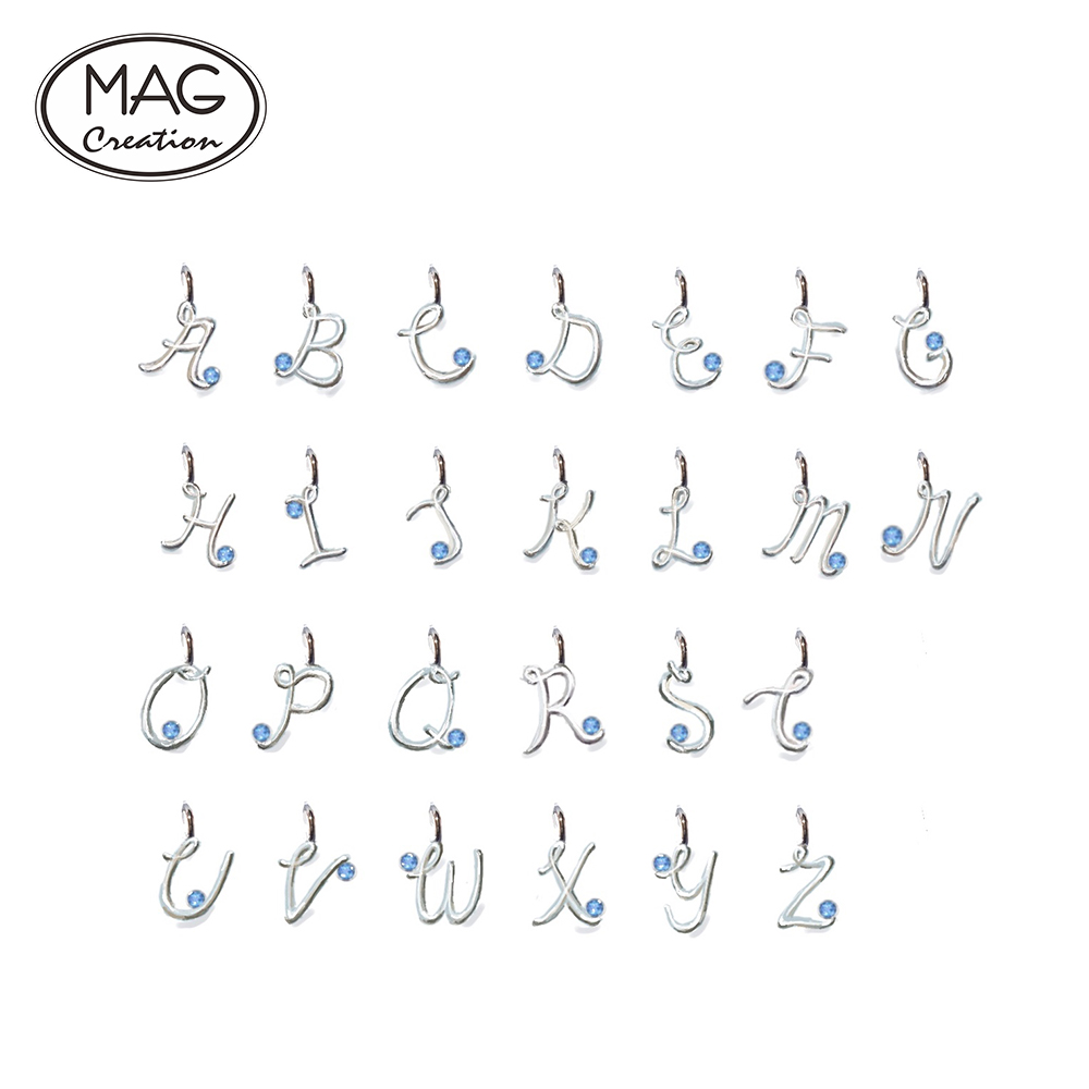 Unique Label Collection 18K White Gold Natural Gemstone A to Z Pendants