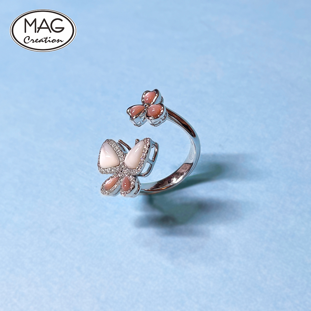 18K white gold, Natural Shell, 0.26ct F VS natural Diamond