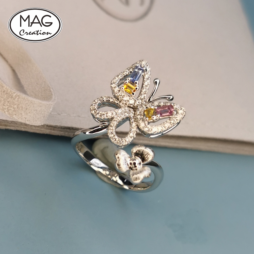 18K white gold, 0.25ct Fancy Color Sapphire, 0.35ct F VS natural Diamond