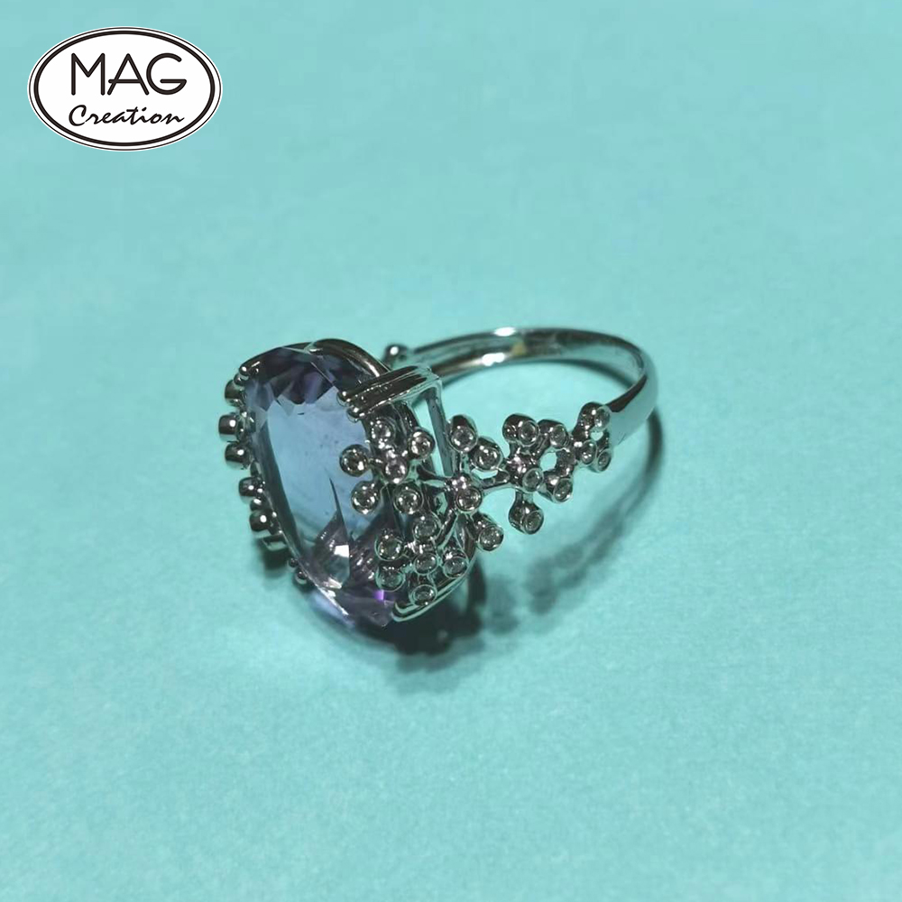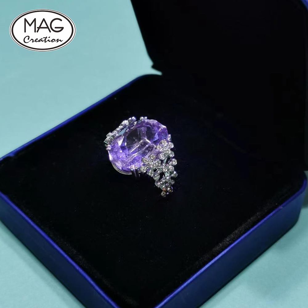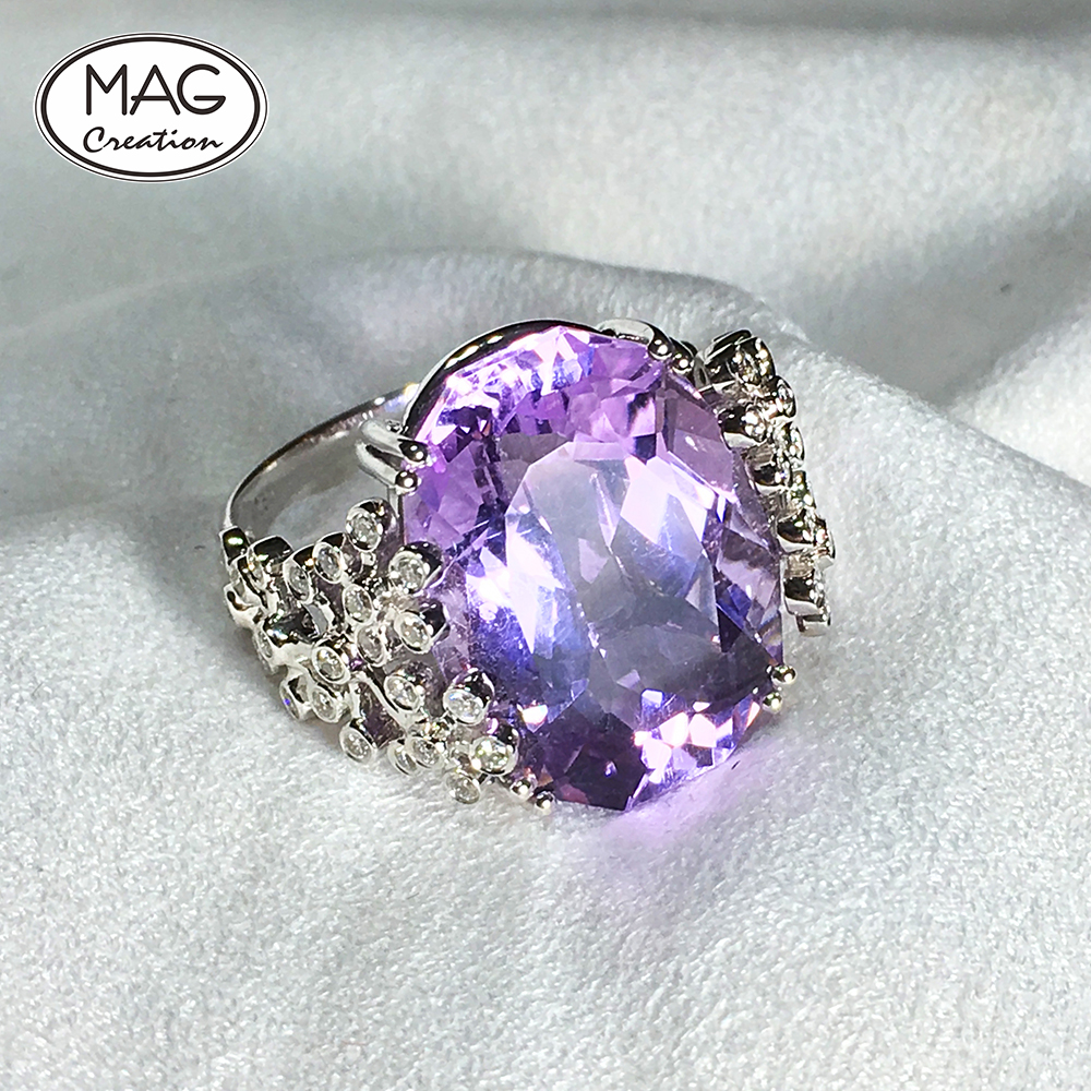 18K White Gold Natural Amethyst Natural Diamond Ring