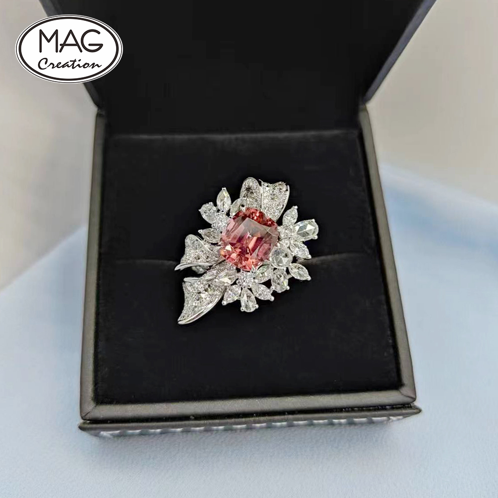 18K White Gold Natural Diamond Natural Pink Tourmaline Ring