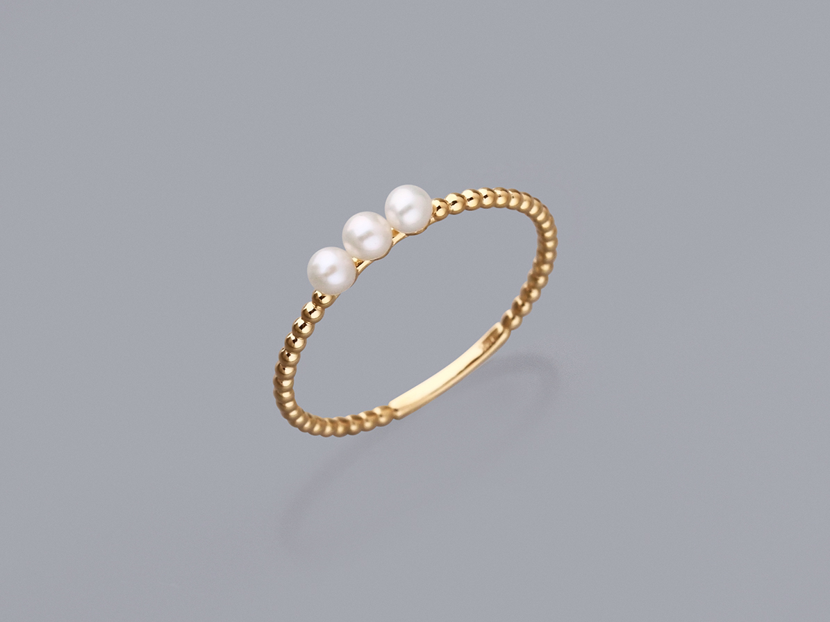 18K Yellow Gold Ring With 2.5-3mm Round Freshwater Pearl