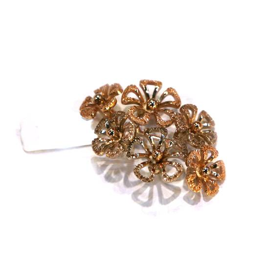 This is a 18K pink and white gold pendant. There are six open work floral patterns on it. All the flowers have five petals and are of slightly different sizes. The sparkling gold reflects light nicely and adds elegance to this pendant.