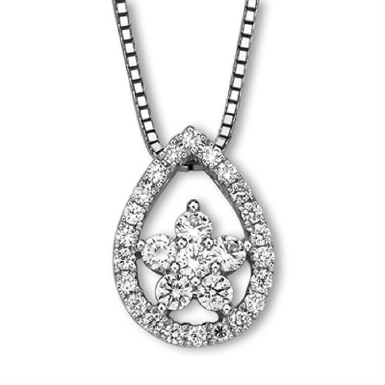 18K Rose & White Gold Droplet with Flower Diamond Pendant