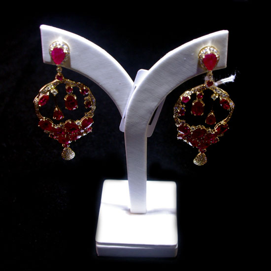 These earrings are exquisitely made of 14.97-carat ruby, 1.47-carat diamond and 18K yellow gold. The earrings are made with exquisite craftsmanship. Adorn your ears with these 18K ruby earrings.